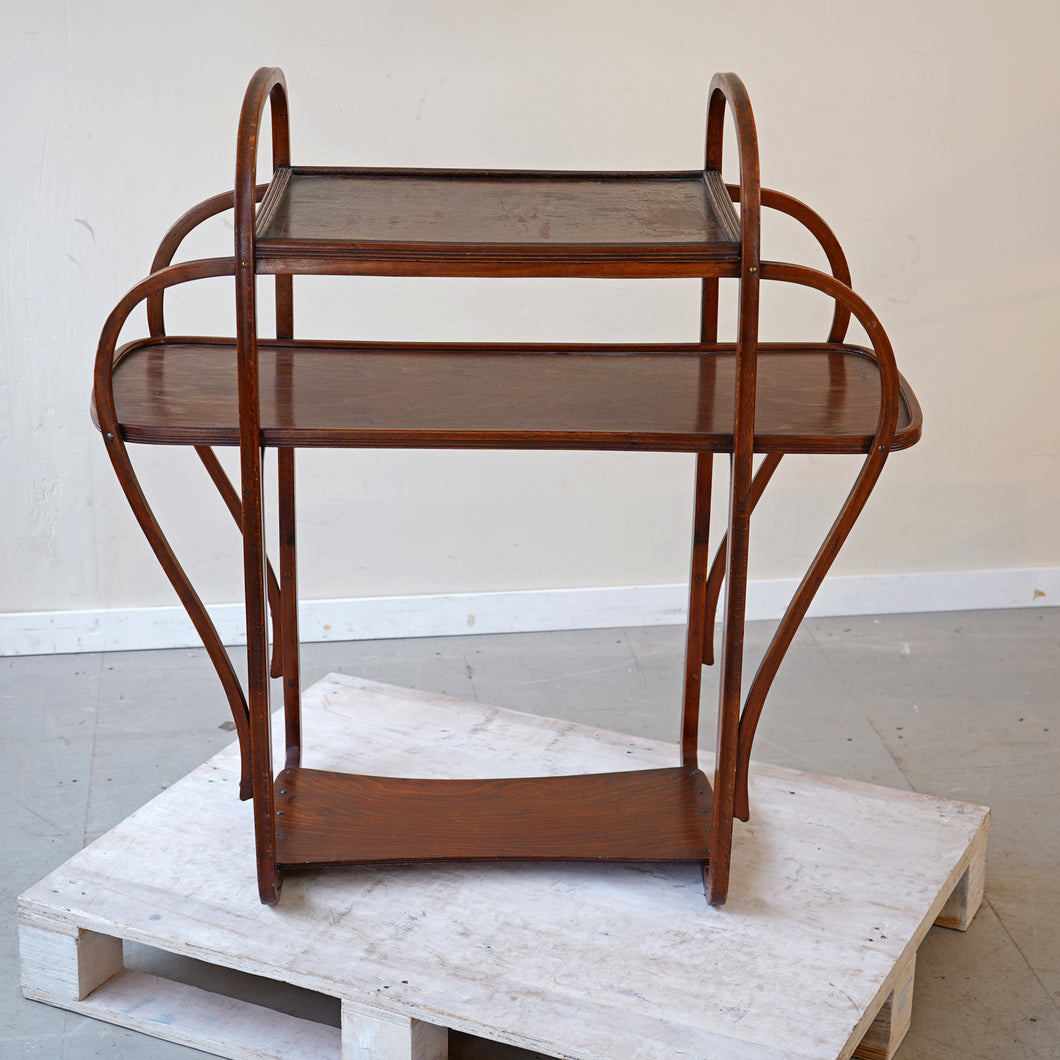 A circa 1900 Art Nouveau server, model 957, designed by Gustav Siegel (1880–1970) for Jacob and Josef Kohn. Crafted from beautifully bent beechwood, the frame is finely squared and molded with a grooved central section. Missing its original paper label, this model entered the Jacob & Josef Kohn catalogue of 1902.