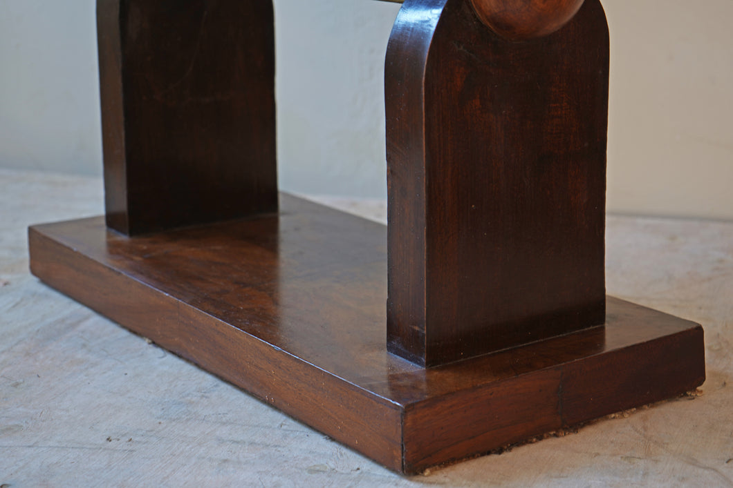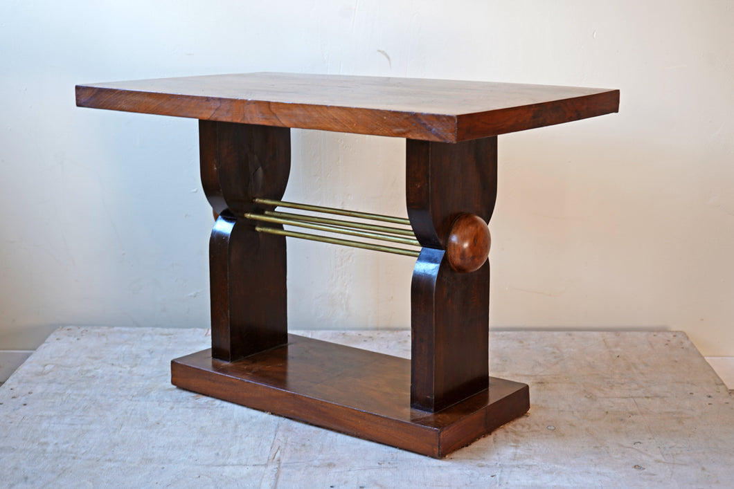 Rectangular Art Deco Side Table – Walnut Veneer & Metal Stretchers, France, circa 1930