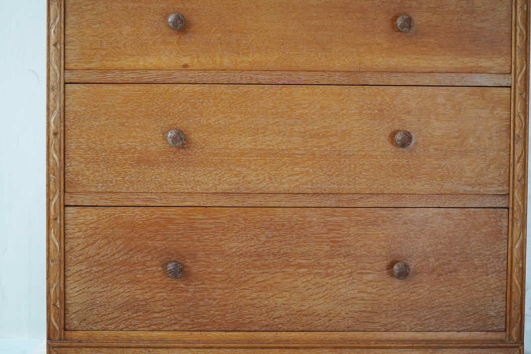 1930s Heals Limed Oak Tallboy Cupboard