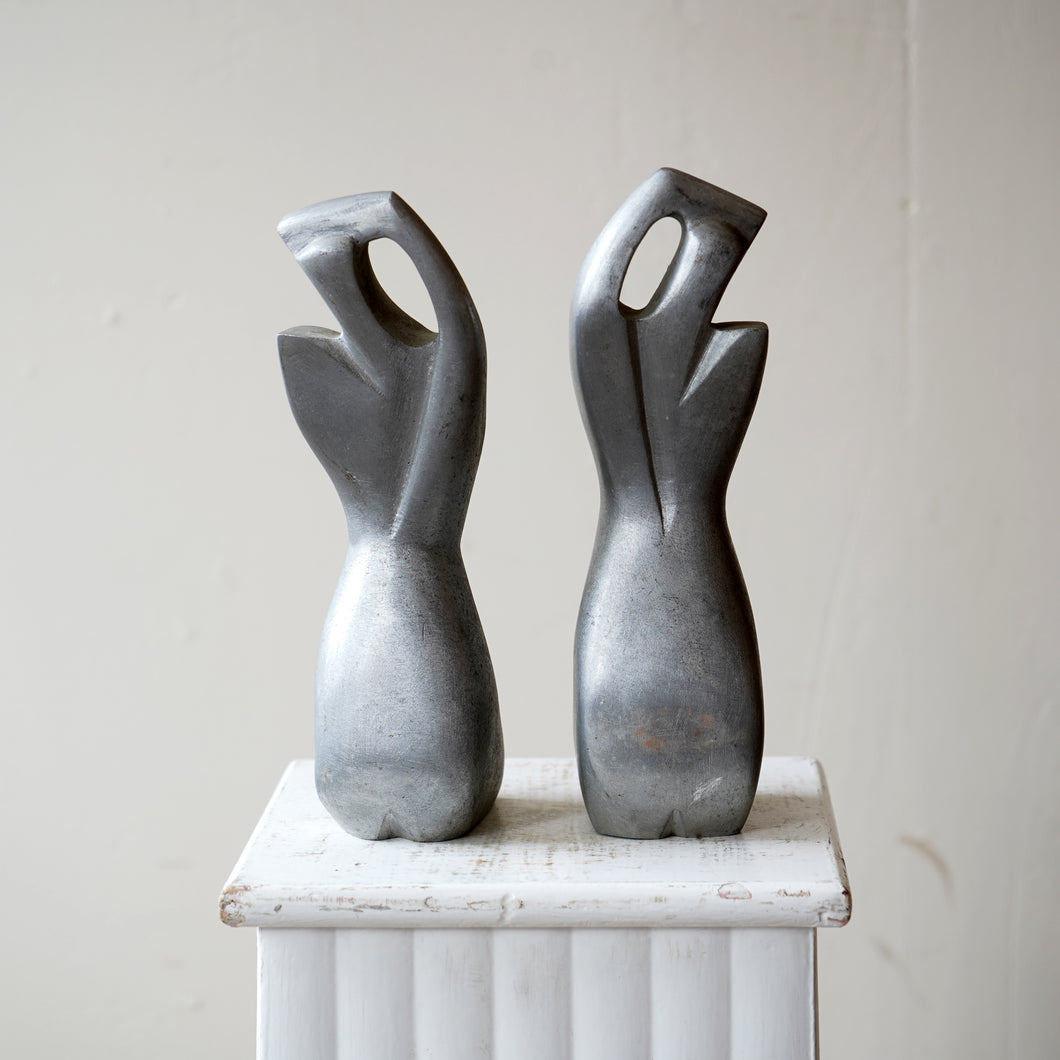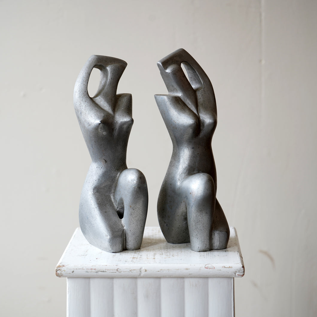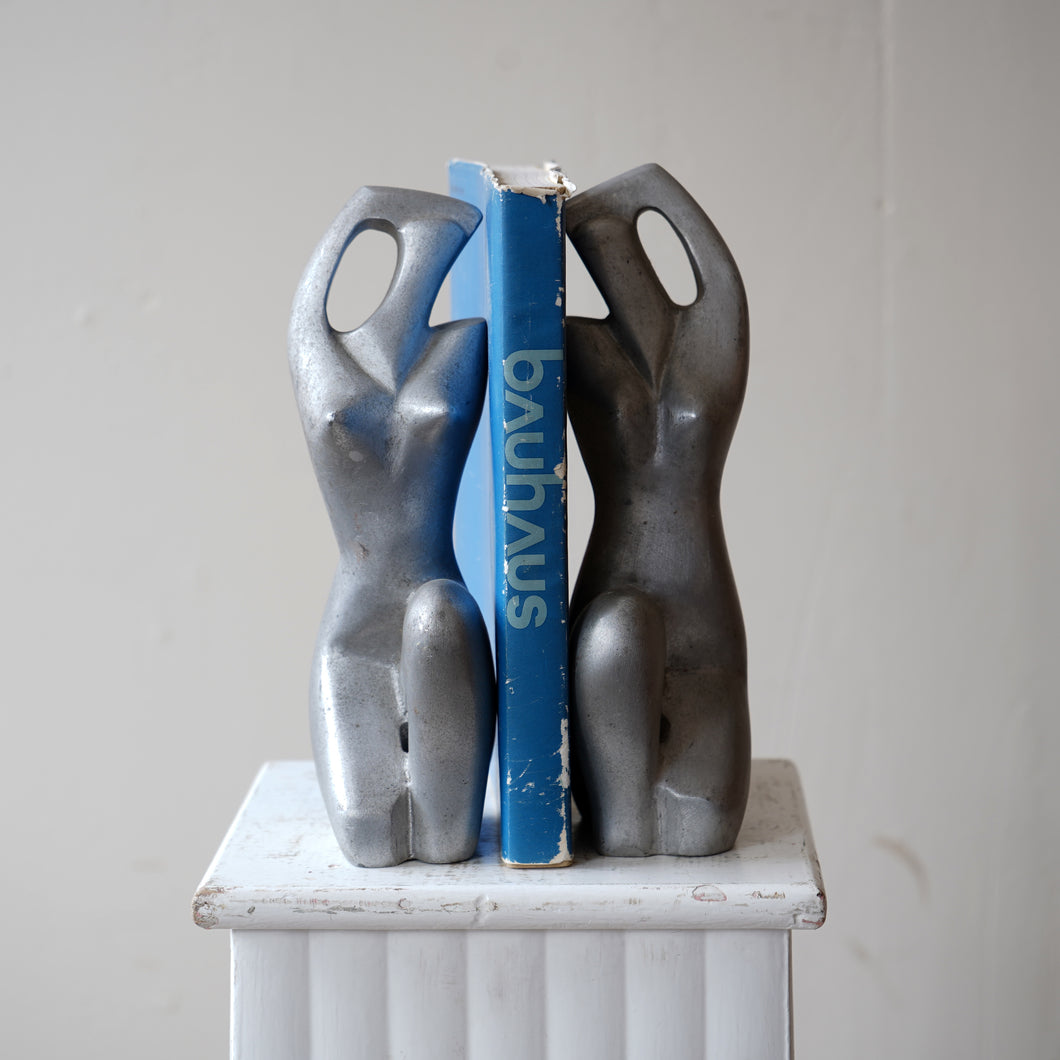 A pair of French vintage bookends cast in aluminium, depicting abstract female forms. Sculptural, minimalist, and functional.